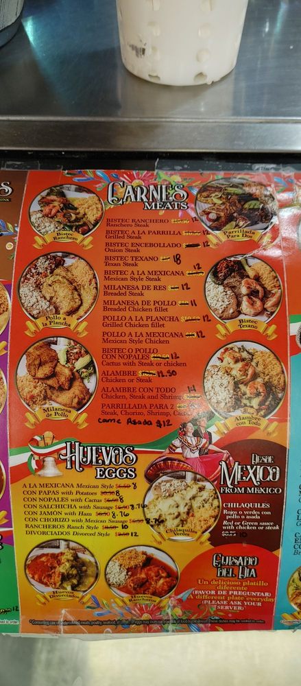 Mixed with bell peppers, and onions. Served with refried beans, Mexican rice, and handmade corn tortillas.